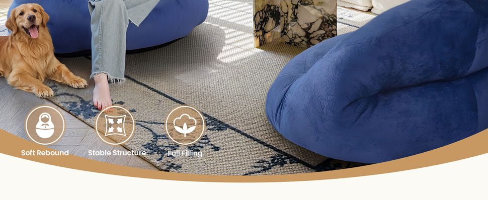 Durable Details & Easy Use:Built with a sturdy zipper, reinforced seams, easy-carry handle, and non-slip bottom, this bean bag chair combines thoughtful details with lasting durability for everyday use.