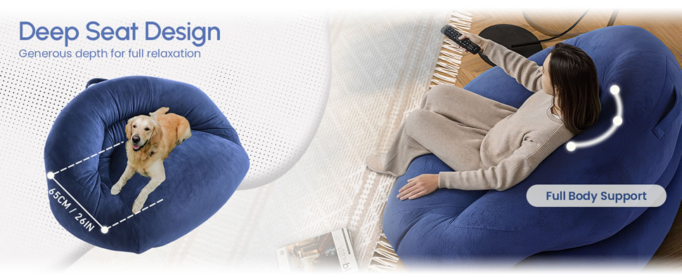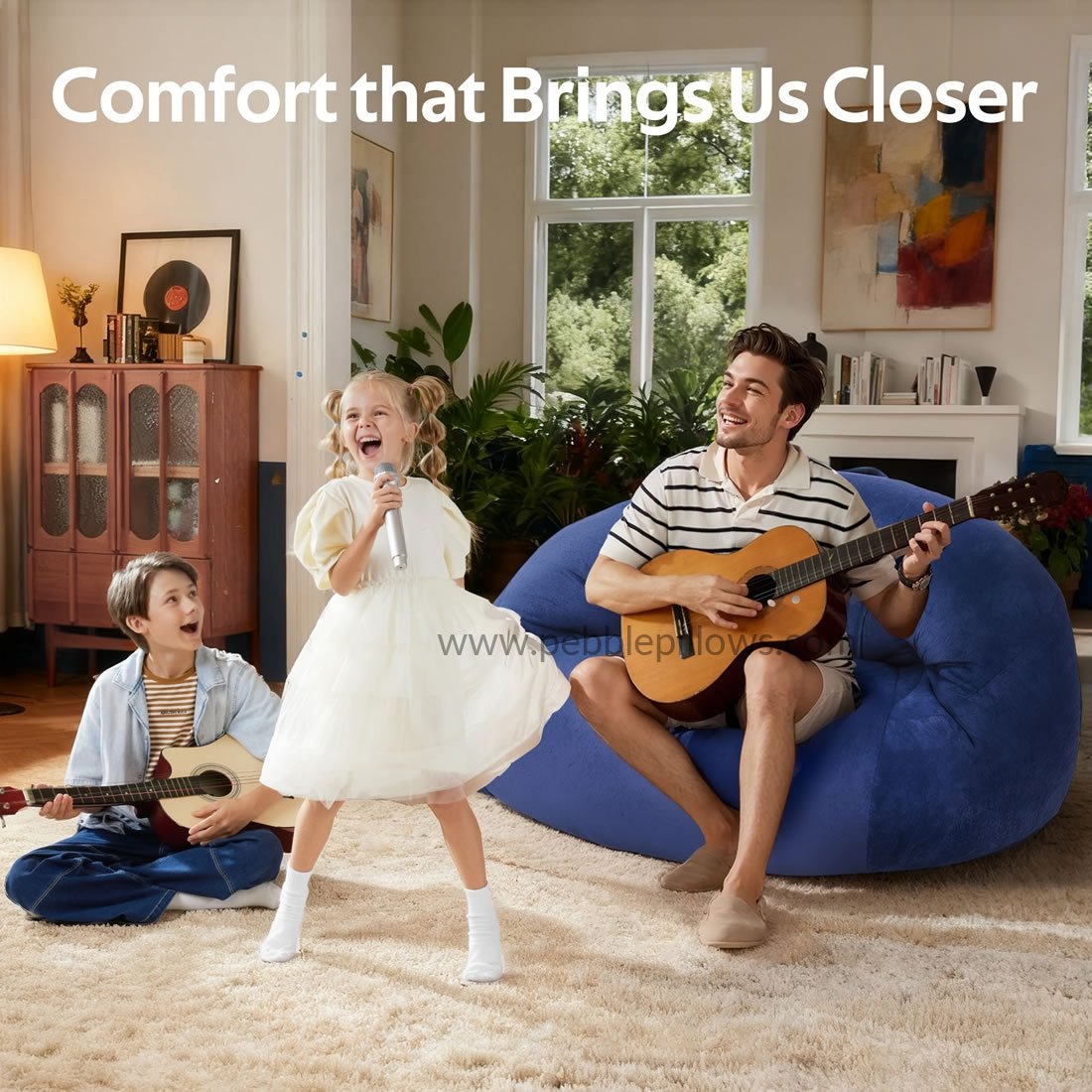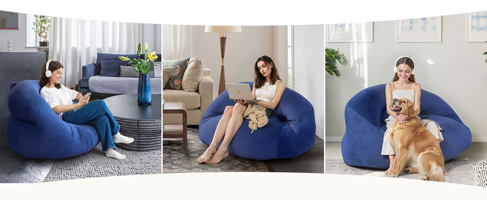 Oversized & Stable Design:Measuring 50″L × 37″W × 28″H, this bean bag chair seats up to two people. Perfect for couples or cozy solo lounging. Its balanced structure ensures stability without leaning on a wall.