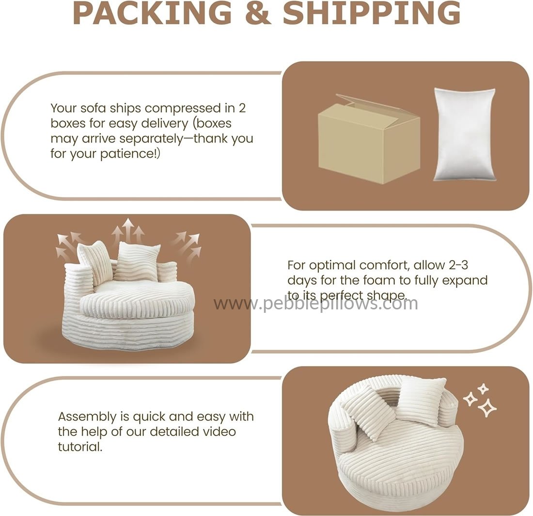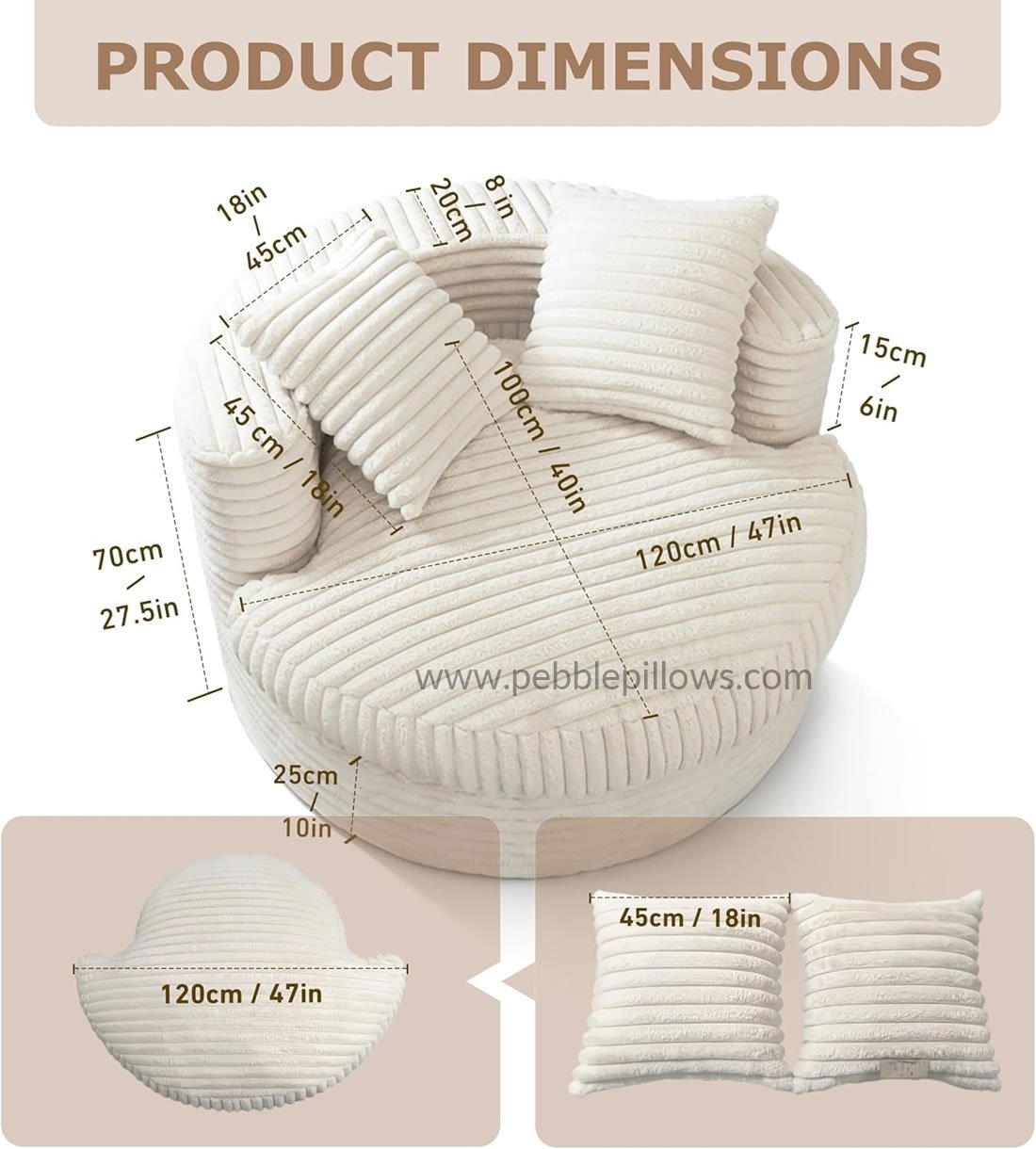 Ultra-Plush Comfort: Enjoy ultimate relaxation with a 47″ wide circular seat and 40″ deep lounging seat, wrapped in dual-layer comfort: a cloud-soft PP cotton cushion on top and a high-density foam base underneath for lasting support with zero sagging. Ideal for anyone searching for a truly comfortable lounge chair.