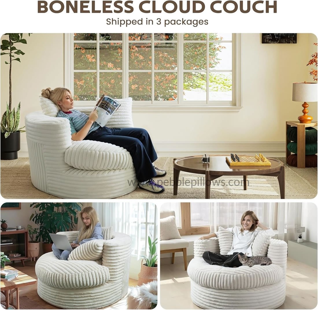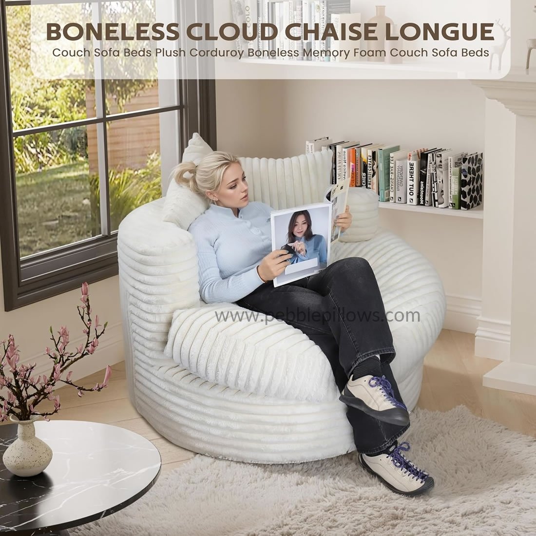 Ultra Comfy Round Chaise Lounge Chair for Adults, Plush Bean Bag Sofa